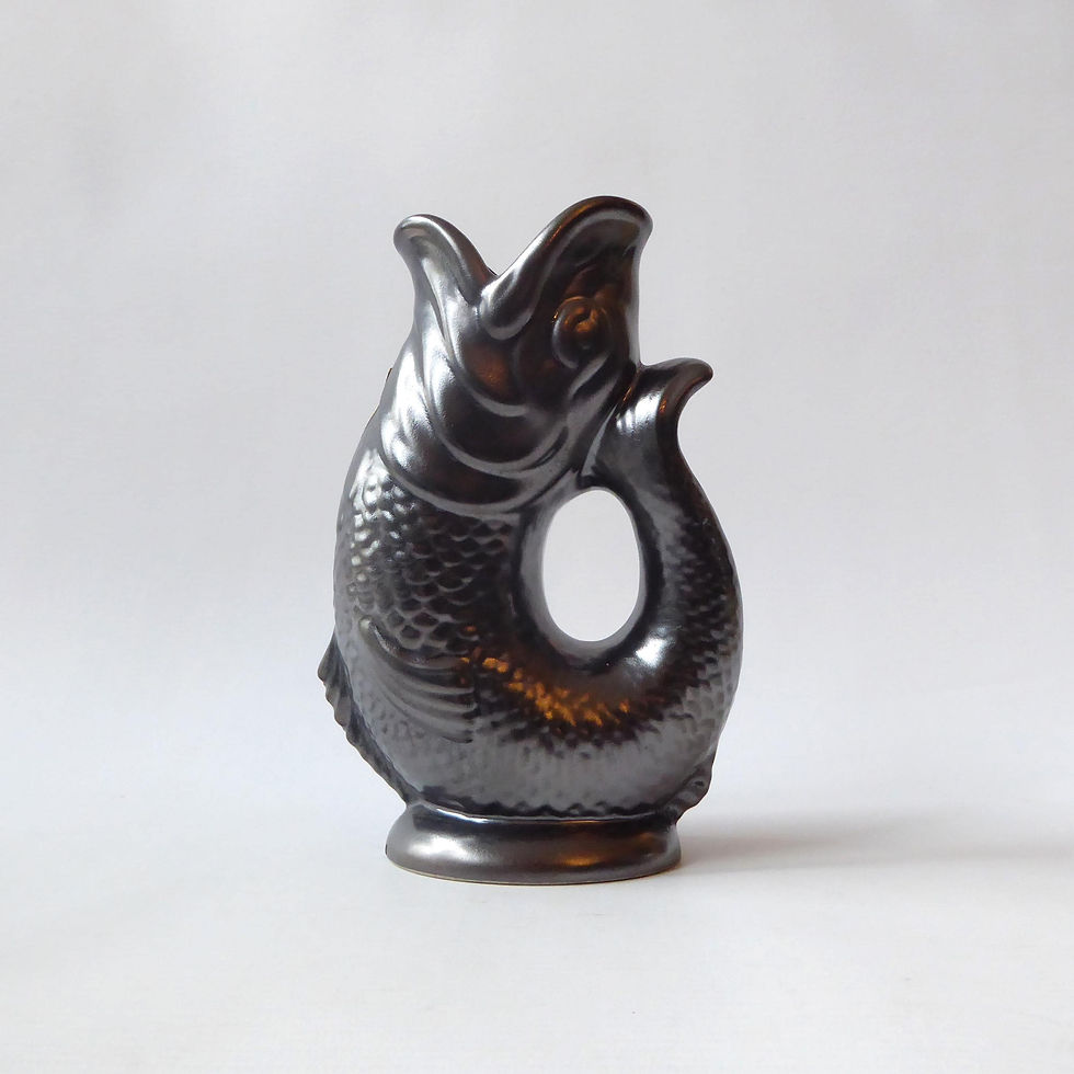 Dartmouth Pottery black gluggle fish jug. Vintage retro mid century 1960s 1970s